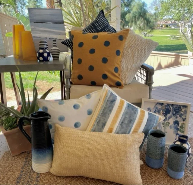 A classic pillow collection of patterns, textures and stripes. Shades of navy, blue and gold make Sydney a handsome group. Interesting original and printed art, classic collectables and stylized plants are available to accent Sydney. This Sydney collection is perfect in your living room, bedroom or on your patio.